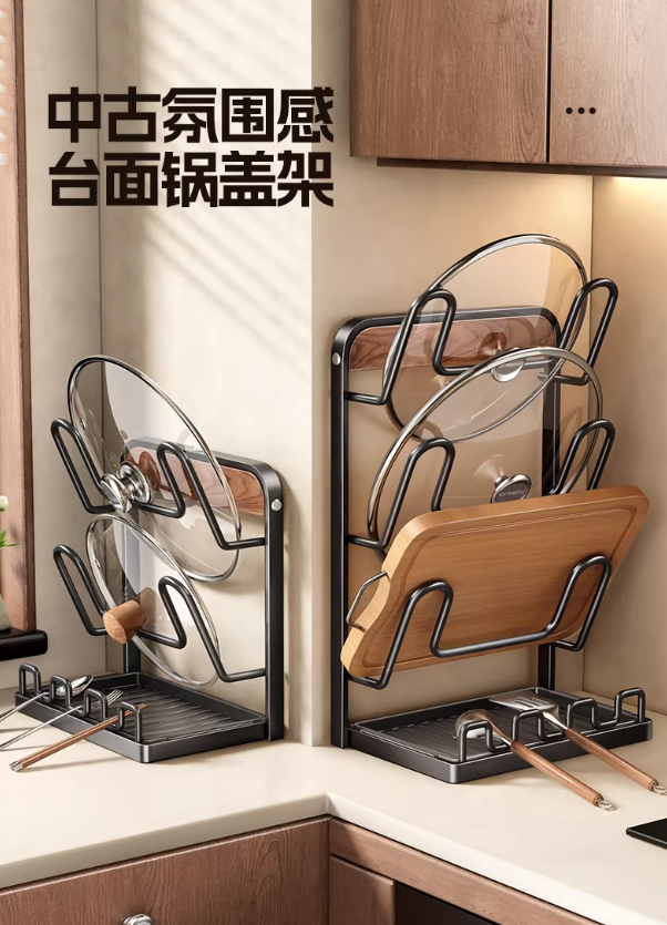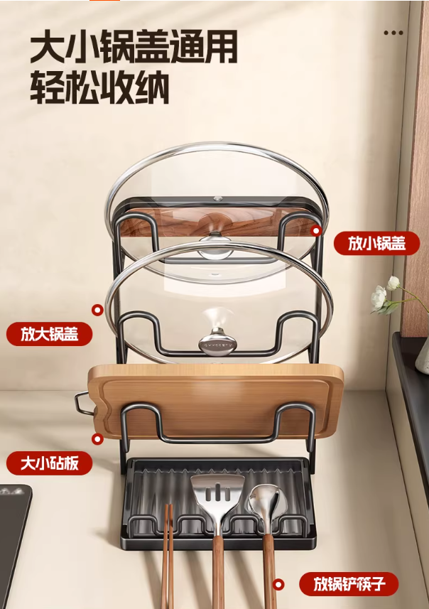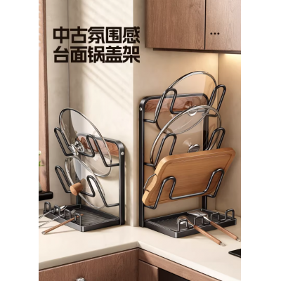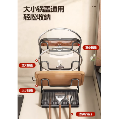 首页 > 日用百货 > 厨房锅盖架锅铲架台面多功能收纳置物架