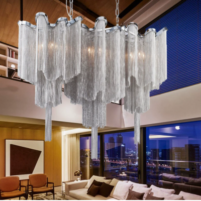 后现代创意奢华流苏铝链条吊灯客厅灯餐厅灯复式楼楼梯间连锁店灯